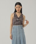 【チェック×デニム】チェック柄のノースリーブシャツをベスト風にして着てみました◎ラメの効いたTシャツに私物のアシンメトリーのボディスーツを合わせて左右の見え方を変えたのがポイントです。〈Levi's〉のデニムスカートはかなりコンパクトなサイズ感なのでパンツやスカートにレイヤードするのに大活躍!切り替えが可愛いのでカタヤマも密かに気になっております◎持っているバッグは何度も再入荷している人気のアイテムで最近新色が追加されましたよ〜!2wayなのも嬉しい! ビームス 新宿 / カタヤマ アヤ