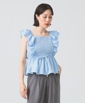 Ray BEAMS(BEAMS WOMEN)のシャツ/ブラウス「シャーリング ヨーク ラッフル スリーブ ブラウス」を使ったコーディネート