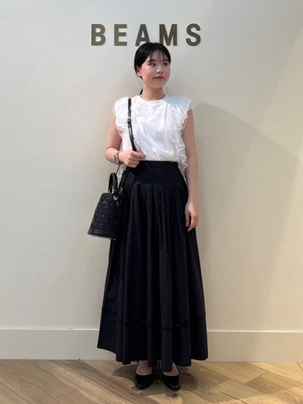 Ray BEAMS(BEAMS WOMEN)のTシャツ/カットソー「チュール レイヤー ラッフルスリーブ Tシャツ」を使ったコーディネート
