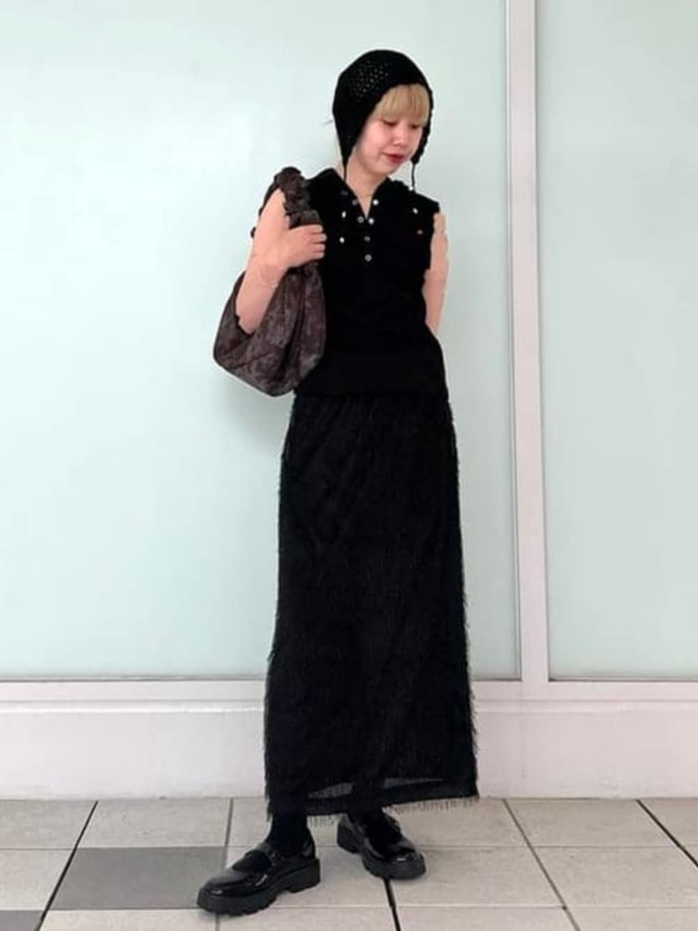 【オールブラック♪】ブラック好きです〜。よーく見るとフリンジがひらひら可愛いスカート。ウエストはゴムで履きやすいのにスッキリしたシルエットでスタイルも綺麗に見えて、尚且つフランジのデザインで合わせやすいのにほかにはない一着になるのが魅力的です♡ピタッとしすぎず体のラインも出ずらいので着用しやすいです♪ Ray BEAMS ビームス 二子玉川 / まあや