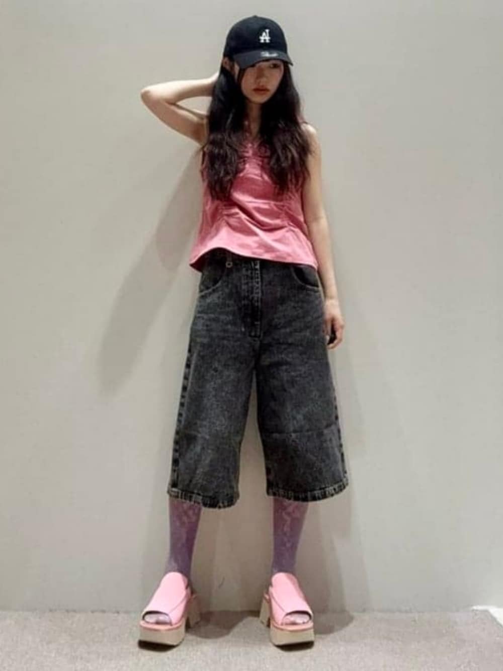 こんなの欲しかった〜なイチオシデニムのハーフパンツ入荷してきました〇少し大きめサイズ感で腰パンで履いてメンズライクに。差し色にピンクを入れちゃって。 ビームス 新潟 / マツモト