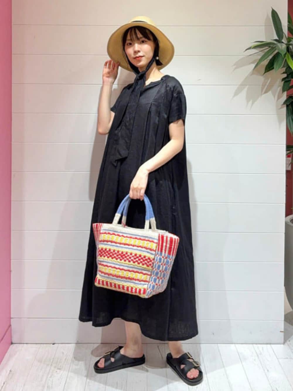 【大人なリネンワンピ】163cm、サイズはワンサイズです!リネンなので黒でも夏らしくサラッと着用していただけます◎夏小物と相性抜群!ハットやカラフルなバッグが映えます☺︎ ビームス なんば / テラザワ