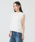 Ray BEAMS(BEAMS WOMEN)のTシャツ/カットソー「チュール レイヤー ラッフルスリーブ Tシャツ」を使ったコーディネート