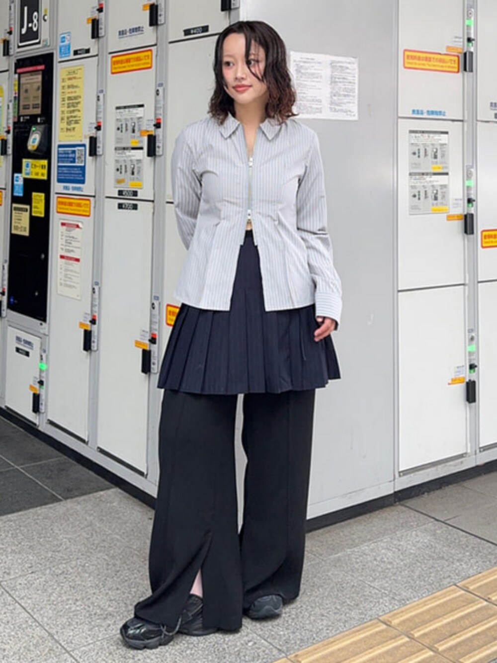 Ray BEAMS(BEAMS WOMEN)のシャツ/ブラウス「ストライプ ジップ シャツ」を使ったコーディネート