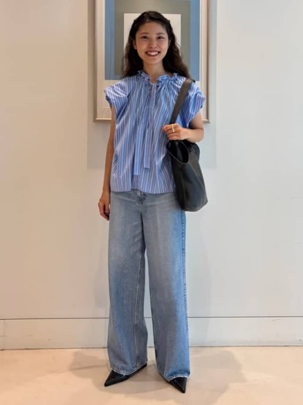 【164センチ / 骨格ナチュラル / ブルベ夏 着用】きちんと見せたいけど、かっちりしすぎたくない日におすすめのブラウス。やっぱりデニムはワイドが好き。 Ray BEAMS / 南