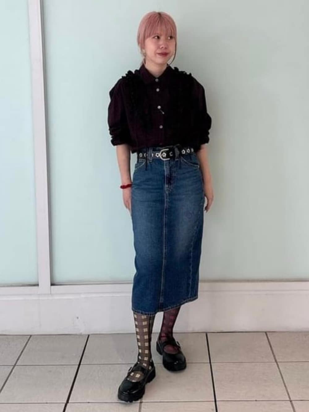 【161cm スカートサイズ24着用】ピタッとタイトな膝丈のスカート♡タイツや靴下など合わせて楽しめる丈なのでコーディネートがより楽しくなります♡♡スリットが深く開いているのでタイトですが歩きやすさもバッチリです! Ray BEAMS ビームス 二子玉川 / まあや