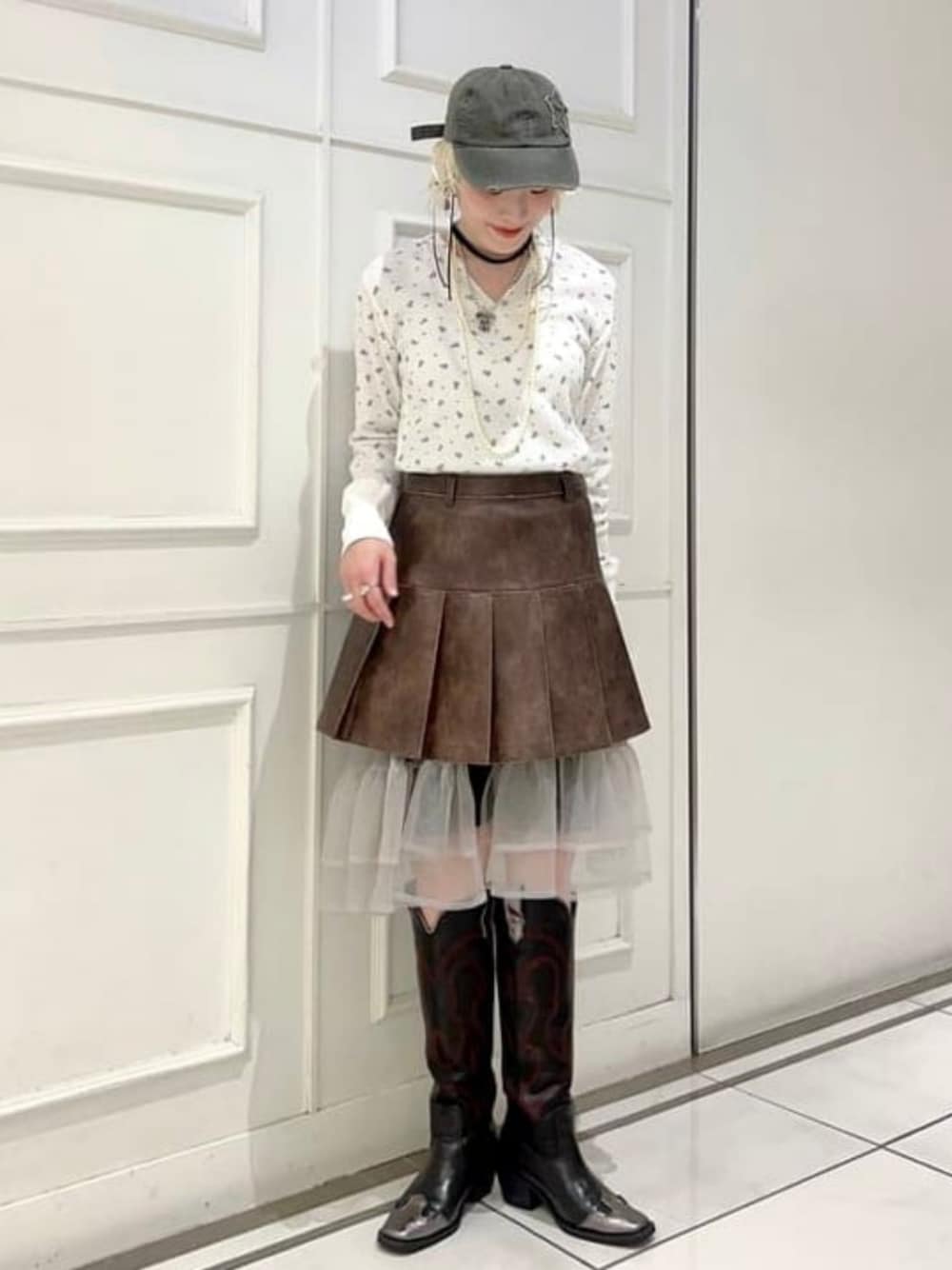 Ray BEAMS(BEAMS WOMEN)のスカート「フェイクレザー プリーツ ミニ スカート」を使ったコーディネート