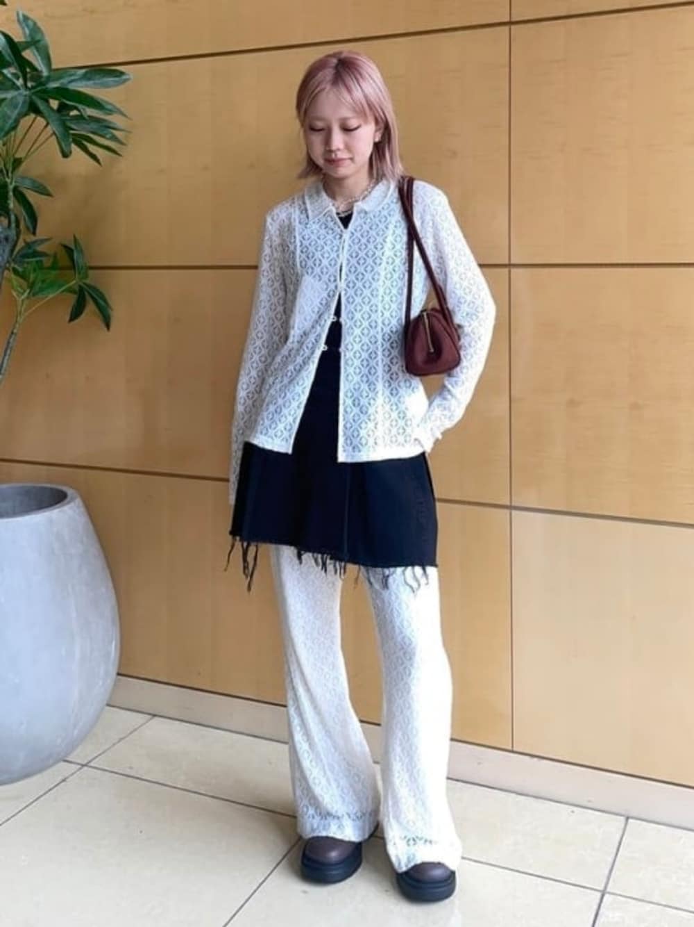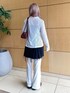 私の骨格(ウェーブ)でシャツとパンツのセットアップのみだと寂しく見えてしまうので〈77circa〉のスカートをレイヤードし、骨格を活かしたコーデを組んでみました☆パンツは裏地が着いていますので透けずに安心して着ていただけます!レイヤードにはピッタリなパンツですね☆ Ray BEAMS ビームス 新丸の内 / Hiyo
