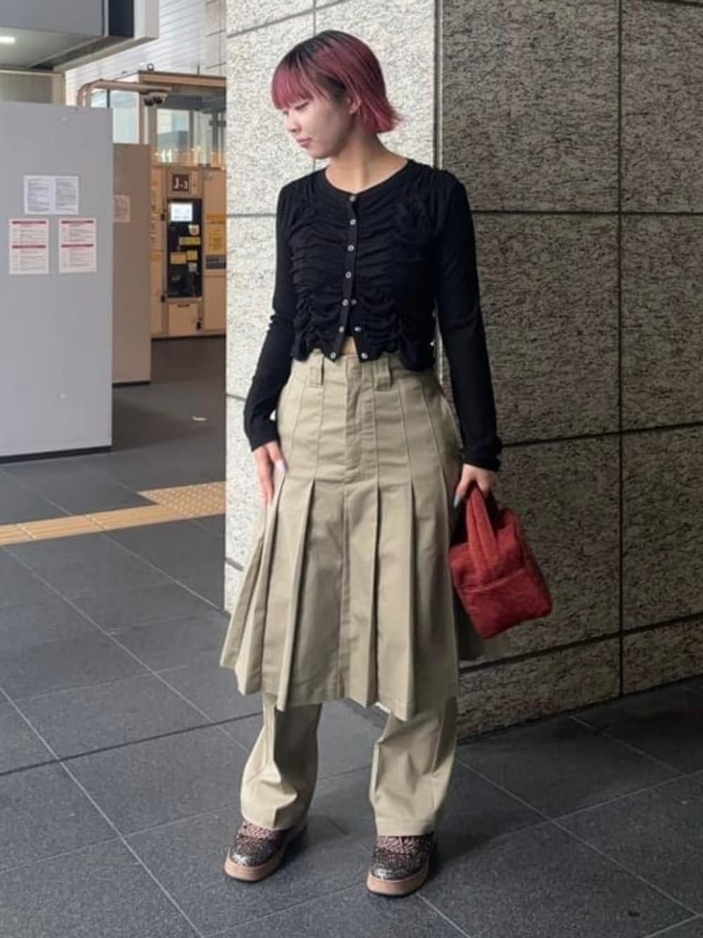 カーディガンは、丈が短めで、デザインがありますが、着やすくておすすめです!パンツとスカートは、別々で着ることも可能です!!色味もプリーツの具合も可愛くておすすめです!バックは色味が明るすぎず、見た目は大きく見えすぎませんが、いっぱい入ります!! (160cm/size:1) ビームス 梅田 / ヒヨリ