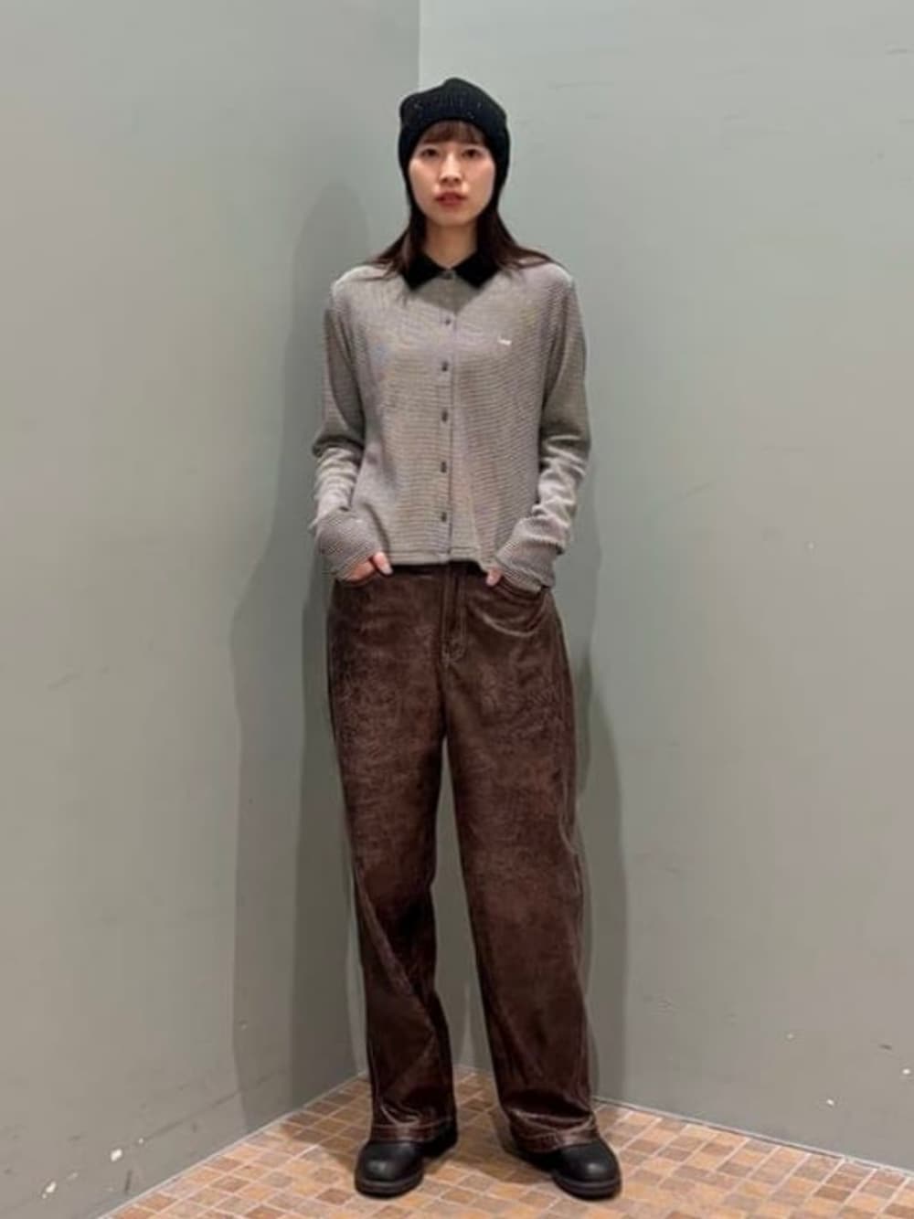 〈Lee〉のシャツは柔らかく、よく伸びるワッフル素材です!身幅はタイトめですが袖の長さがしっかりありバランスがとても可愛いです!今年も大人気のスパンコールビーニーを合わせてみました!やや深めに被るのがオススメです⭐︎ ビームス 池袋 / はやしあかね