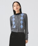 Ray BEAMS(BEAMS WOMEN)のカーディガン/ボレロ「アーガイル クルーネック カーディガン」を使ったコーディネート