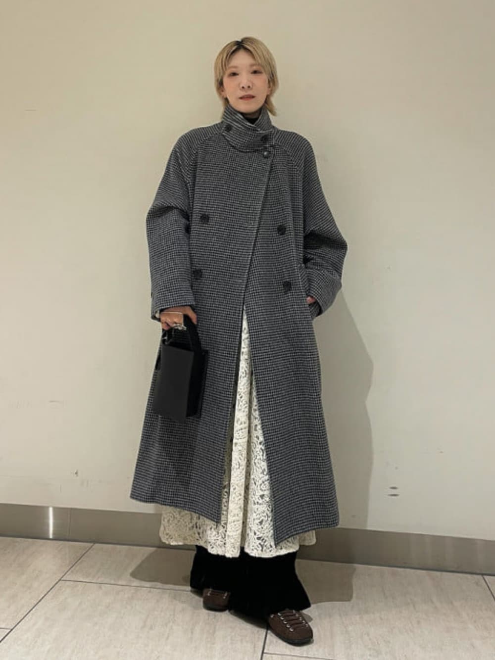 Ray BEAMS(BEAMS WOMEN)のステンカラーコート「スタンドカラー ダブル コート」を使ったコーディネート
