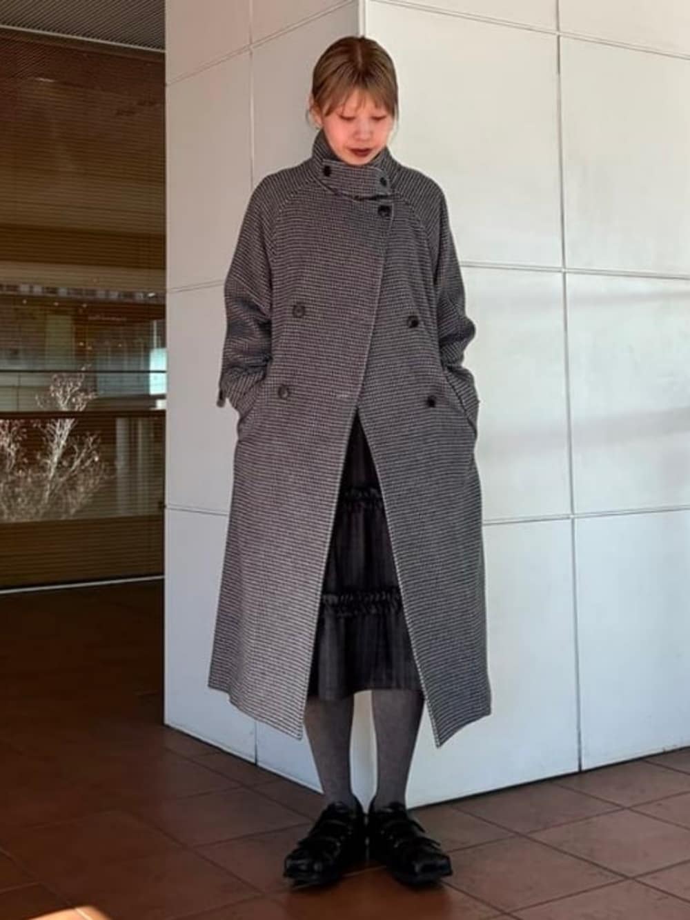 【161cm コートサイズ1着用】長め丈のコートをお探しの方におすすめのアイテム。スタンドカラーでも、襟をおって開襟のスタイルでも着用できる万能アイテムです。派手すぎない柄で、柄物に挑戦したい方にもオススメです。軽くてとても暖かいです。 Ray BEAMS ビームス 二子玉川 / まあや