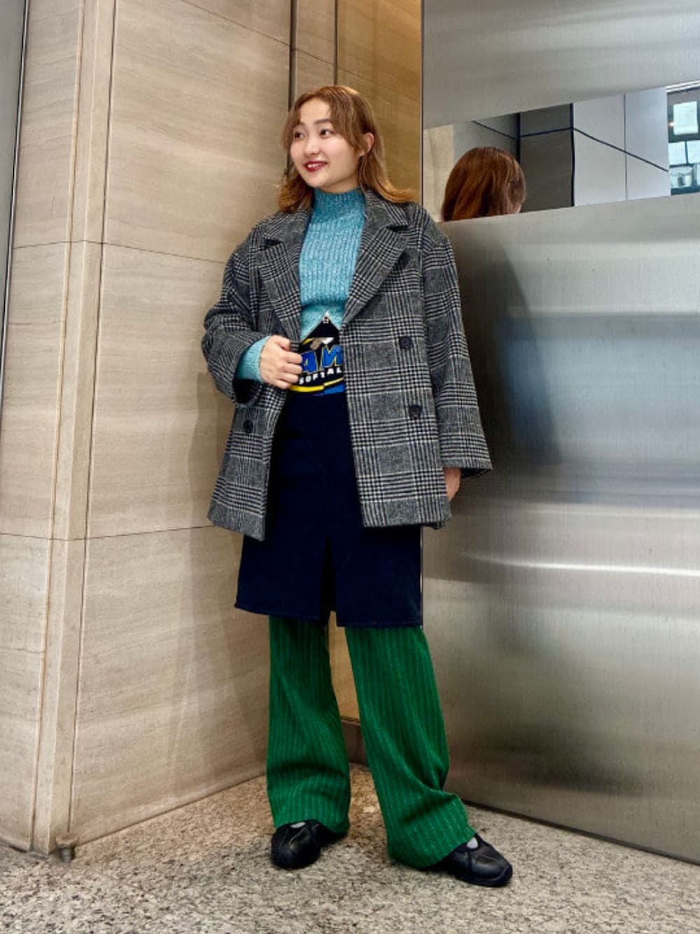 グレーのチェックってどんな色や柄ともマッチするので好きです♡スカートとシューズをブラックにしてバランスを取ったのがポイント!! ビームス 銀座 / 葛岡 七海