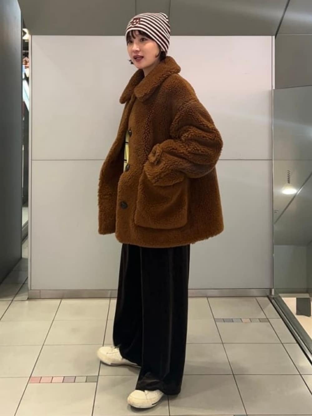 今日はモッコモコのボアが主役のアウターです(*^^*) 厚みがとてもあり温かく、襟がとても大きくて小顔効果も狙えちゃいます☆ 丸襟でコロンとしてるのも良い!!!( ´∀`)♡ 中にはチャンピオンのTシャツを着ています。こちらもネイビーとイエローの配色がかわいいです。 Ray BEAMS ビームス ストリート 梅田 / FUKA