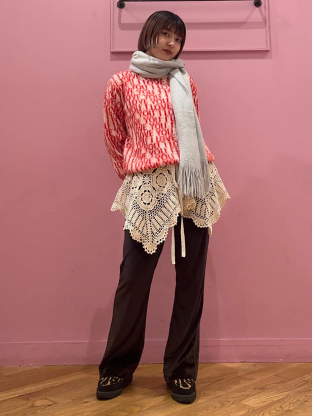 【155㎝/PENNEY'Sコーデ】トップスもボトムスも〈PENNEY'S〉で揃えています!近くで見ると毛足の長いニットは、ちょっと個性的でかわい!ベロアパンツはシルエットが綺麗すぎて私もお気に入りなアイテムで、とても重宝しています! Ray BEAMS ビームス 大宮 / シオン