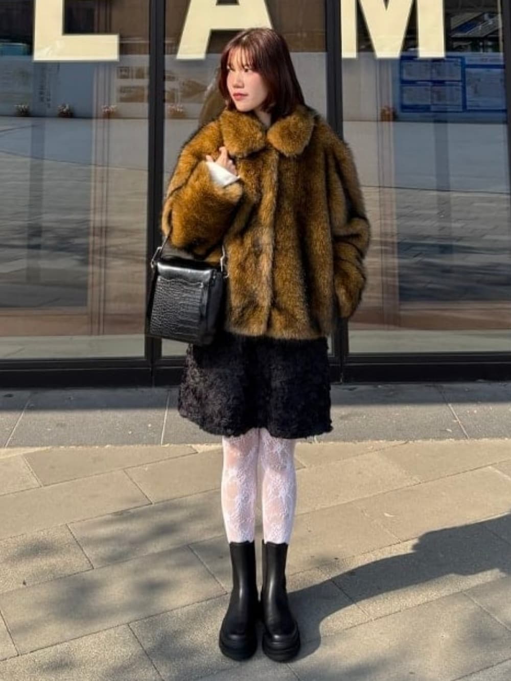《158cm/骨スト》《アウター:1、キャミワンピ:1、ブーツ:36、バッグ:FREE》ボリューミーのあるアウターを着て、冬コーデ♡ボリュームがありますが、短丈なので大きく見えすぎず、とっても可愛い!!上はボリュームがあるので、下にミニキャミワンピを着て足元はスッキリさせました♪ ビームス 長崎 / 河野 花心