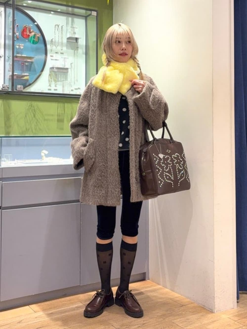 【Web限定カラーが可愛い♡】ひよこちゃんみたいなお色のファーティペットが可愛い〜コーディネートのアクセントになること間違いなし。最近はパステルが気分〜、アウターは164cmサイズ1着用。しっかり中にも着込めるゆとりがありザックリ着れる感じ嬉しい。 Ray BEAMS / おミツ