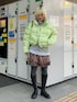 【ショートがキュートでグリーンなダウン♪】着丈は短く、裾を絞るとさらに短く、目を引くカラーが素敵なダウンです★サイズMの大きい方を着用しておりますが、インナーに厚めのトップスを合わせるならこちらのサイズで間違いないです◎(153cm/size:M) ビームス 梅田 / オカジマミウ