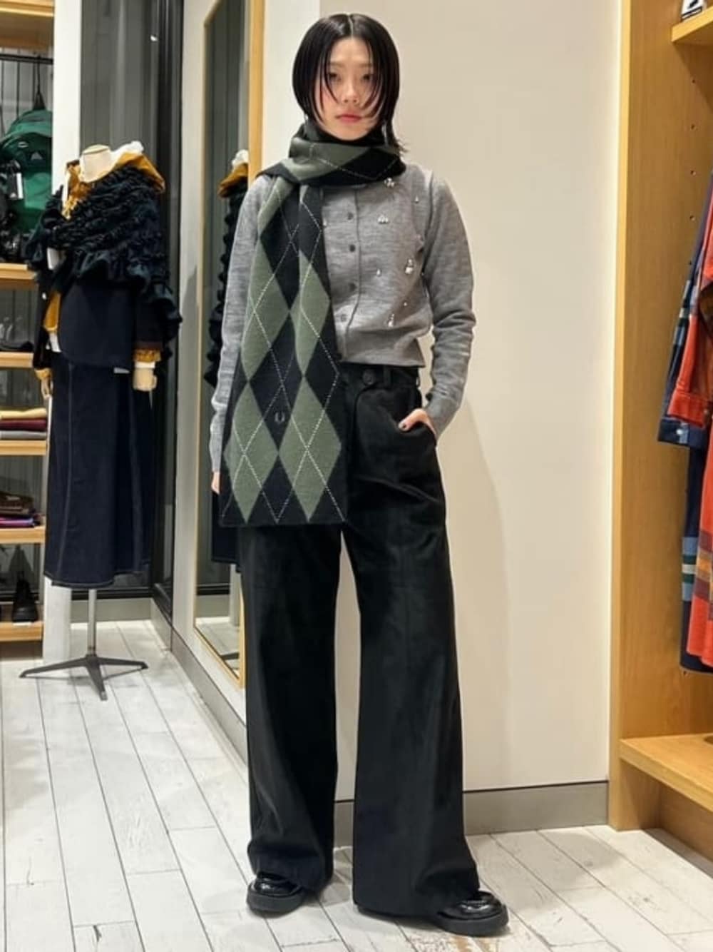 【シンプルコーデ】 トップスはビジューがついており、キレイめやデニムなどと合わせてカジュアルにも! パンツは〈RBS〉のフェイクスエードのパンツ!シルエットが綺麗です。 ビームス 天王寺 / アカリ