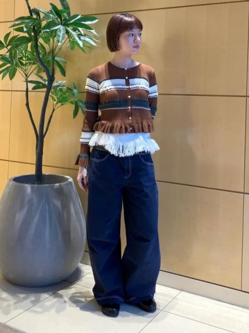 【マルチボーダー♬】ナチュラルで落ち着いた雰囲気を出せるこちらのカーディガン。一枚持っておくとかなり万能です♬袖と裾のフリルがフェミニンでカワイイ。 ビームス 新丸の内 / Hazuki