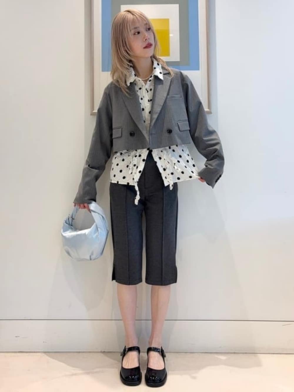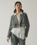 ワンポイントにドットのシャツ♡シャーリングたっぷりで一枚で着ても可愛いですが、ジャケットスタイルもおすすめ。ジャケットは短めの丈でスッキリ見えます。チラッとシャツを覗かせました◎ レイ ビームス 新宿 / おミツ