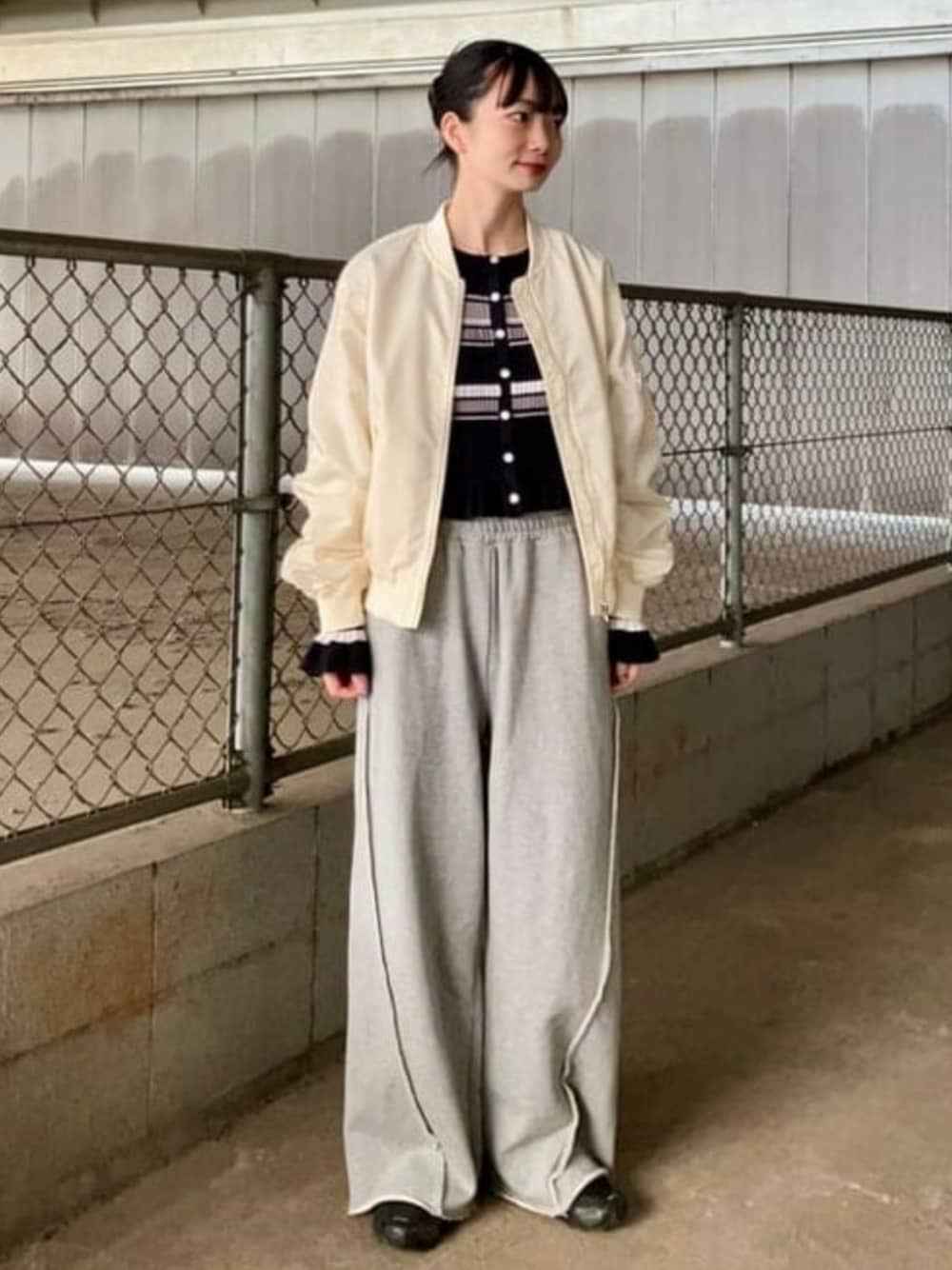 【新規続々入荷中〜!】 スウェットパンツなのに切り替えがあるので、こんなにもスタイリッシュに着用いただけます♪サイズは0を着用。MA-1もあえてピッタリサイズ(0)を着用してインナーのデザインを見せております♡ ぜひ真似してみてください〜 Ray BEAMS ビームス 北千住 / むりょ