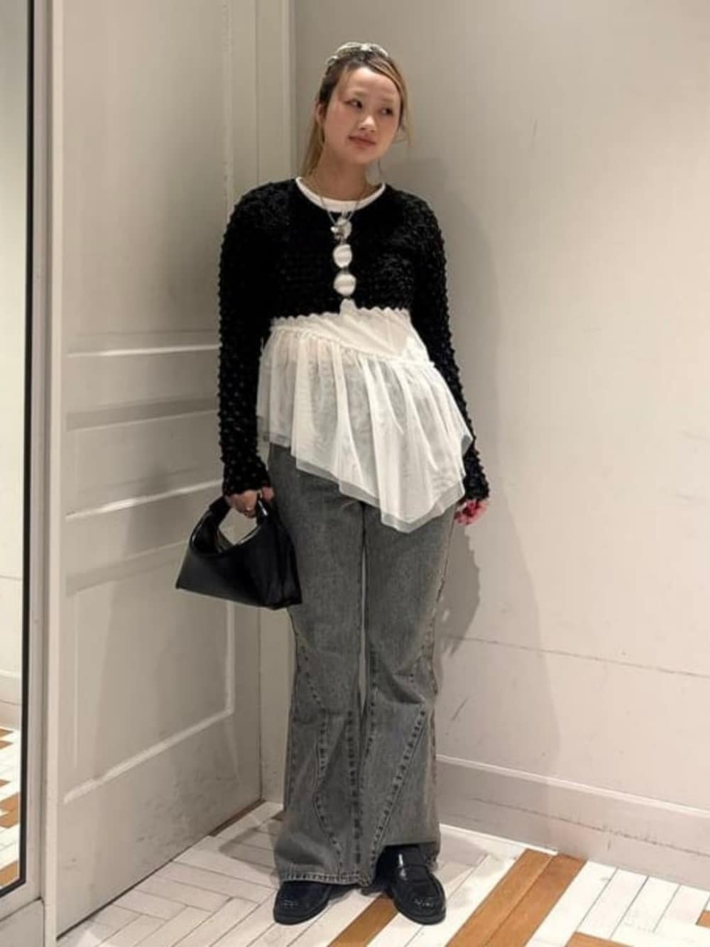 〈Ray BEAMS〉オリジナルのフレアデニムはシルエットがとっても綺麗で、ワイドパンツなどに飽きてしまった人にも、オススメですっ♡ ビームス 恵比寿 / Arisa