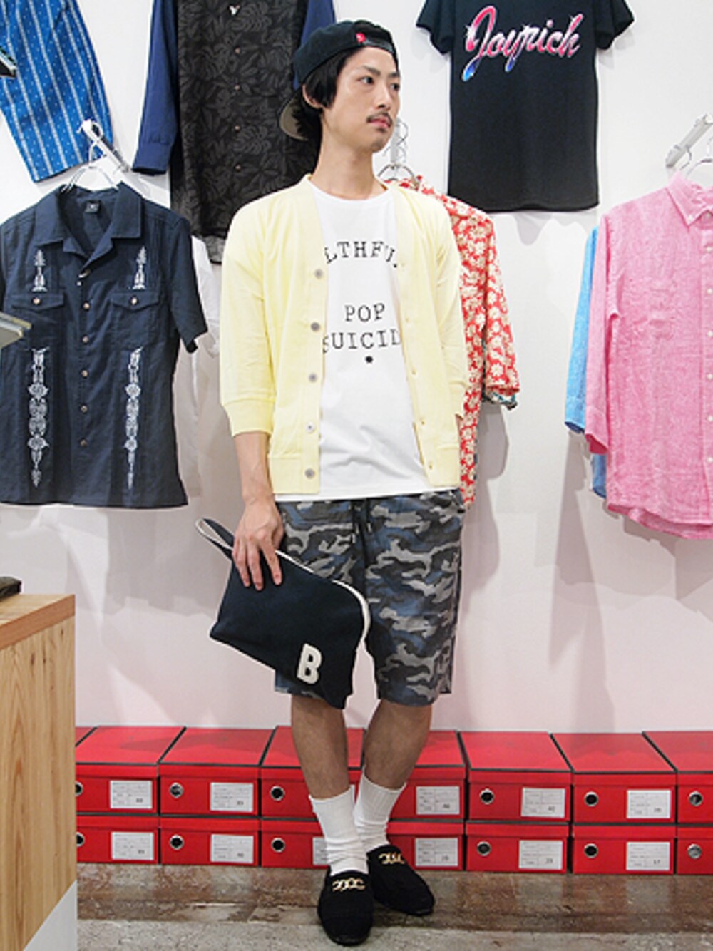 夏場の羽織りとしても最適な薄手のカーディガンを使ったコーディネート。 ベースボールキャップやカモフラ柄のショーツでストリートテイストに仕上げました。 フォロー&セーブいつもありがとうございます♪ 着用アイテムはReggieオンラインストアにて発売中! そちらも是非チェックを☆