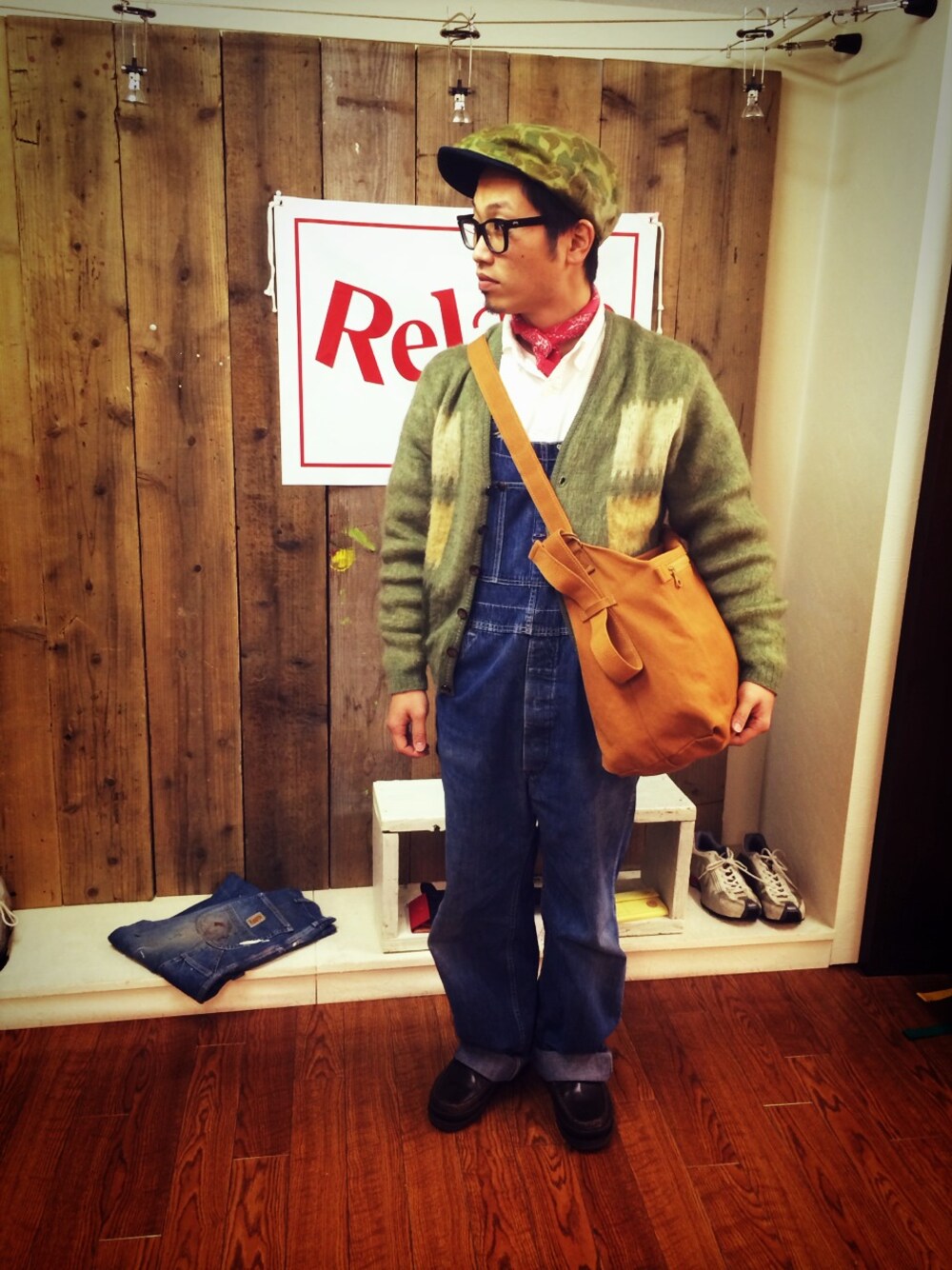 かなり寒い日が続きますね! 今回はほぼ古着ですが古着にRelateはかなり合いますね!特にデニムだとキャメルの色は合います! 今回のショルダーは容量も多く男性であれば一泊2日はいけるのではないかと思います! マザーバックにも最適ですね! 是非ともよろしくお願いします!