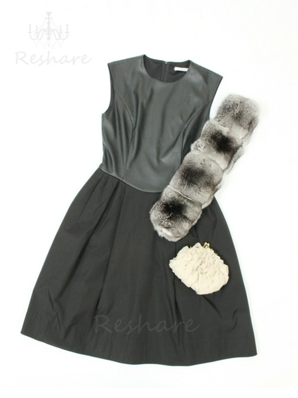 結婚式、披露宴などパーティースタイルに。 ワンピース:フォクシー/ コルティレザー ブラック バッグ:ジャスグリッティー ストール:フォクシー/チンチラファー 胸元がフェイクレザー素材のちょっぴり辛口テイストのワンピース! スタッズのバッグやヒールを合わせてもいいかもー!
