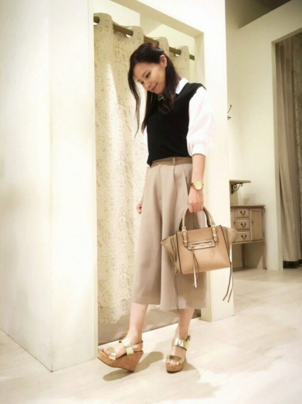 白シャツにベストを合わせてみました♪ サンダルは厚めのクッションで 履き心地いいです♡