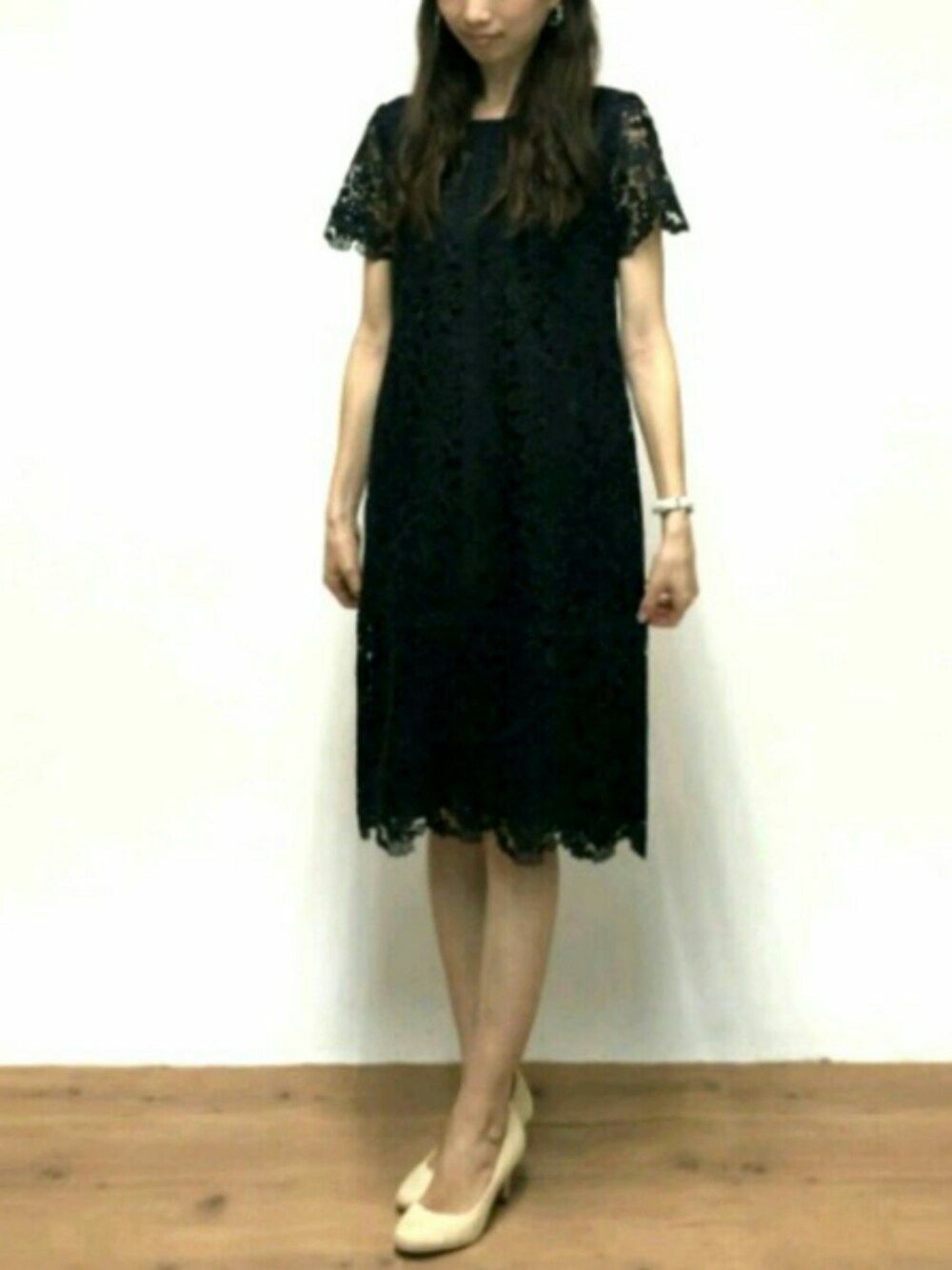 ネイビーのレースワンピは落ち着いてみえるので、少しかしこまった場所でも上品にみえます。肩のレースが透けて見えて可愛い💠
