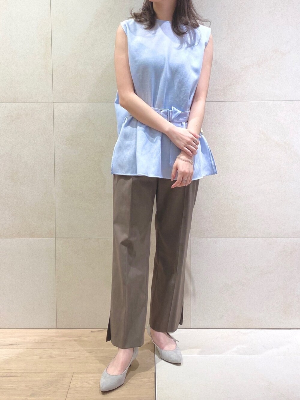 キレイめスタイル⭐️ パンツの丈感とストレート感がシルエットを素敵に見せてくれます! ウエストベルトが付いたブラウスは 脚長効果も見えて◎