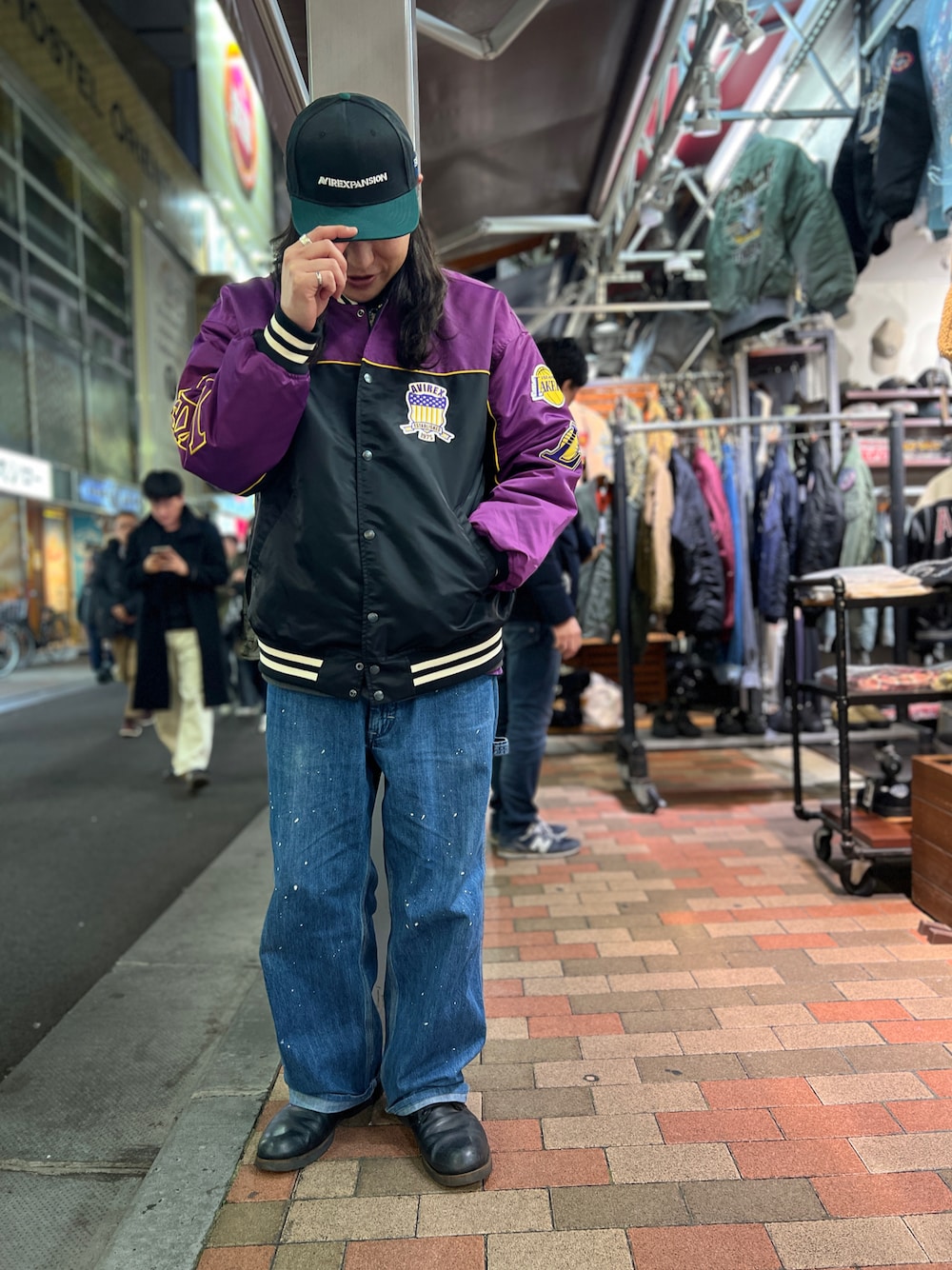 Ryousukeのキャップ「《AVIREX × EXPANSION》 FLAT VISOR CAP BLACK / フラット バイザー キャップ ブラック」を使ったコーディネート
