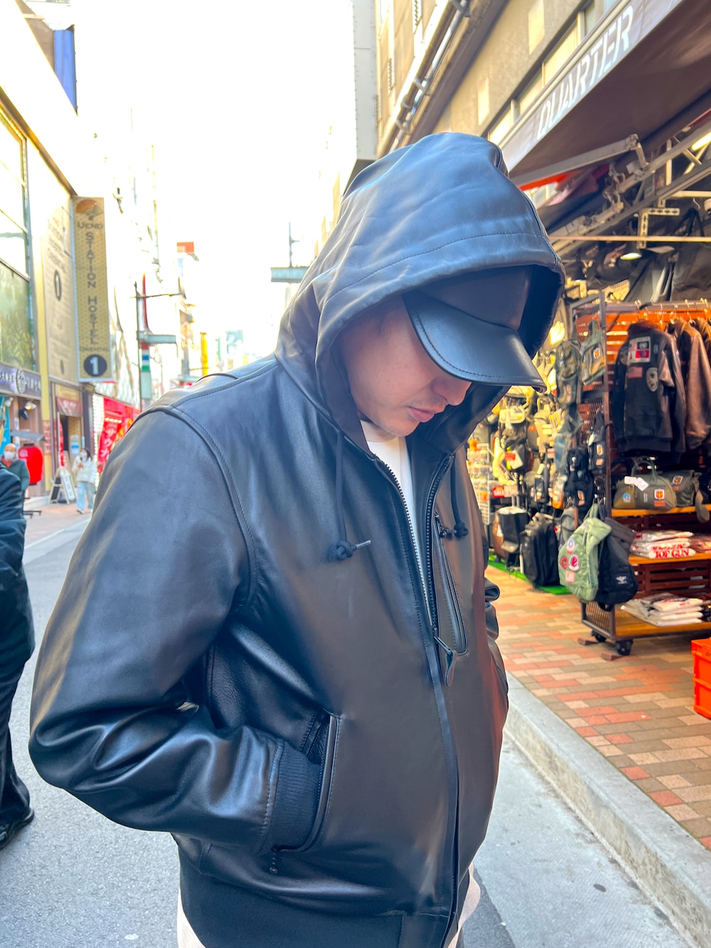 どうも皆さんこんにちは。 174cm75kgでこんなかんじです。 【着用サイズ】 レザーパーカー:L 【QUARTER上野】 〒110-0005 東京都台東区上野6-10-7 アメ横プラザ 106 TEL:03-3834-4749 営業時間: 10:30~19:30
