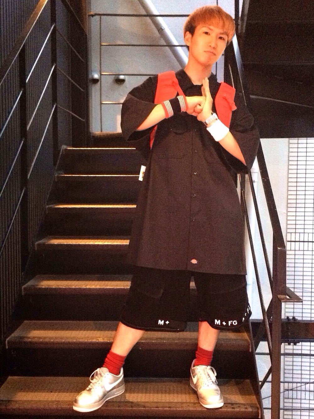 ビッグシルエットのブラックコーデでございます☆ ◯トップス:Dickies 3XLビッグシャツ ¥6270 ◯ボトムス:MARITHE+ FRANCOIS GIRBAUD ワイドショーツ ¥7350 ◯シューズ:NIKE AIR FORCE1 シルバースニーカー ¥8430 ◯リストバンド:FILA ¥1800 NIKE ¥1400 ◯バック:NIKE SB バックパック ¥13830 気になった方は info@kakavaka.com まで! 是非!