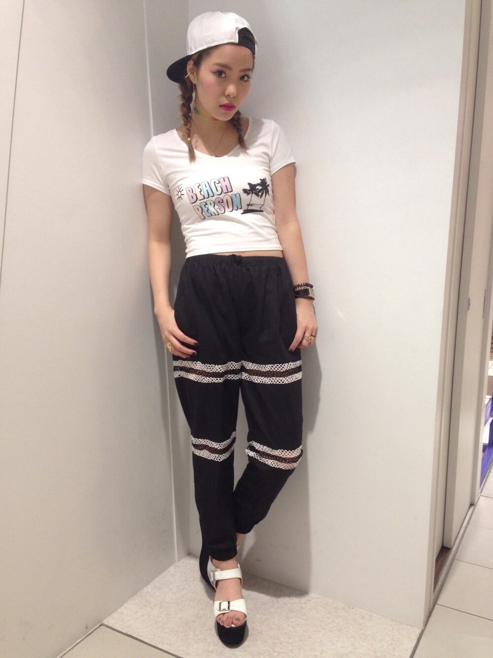 メッシュが入ったこのパンツは少しゆるいシルエットなので、 トップスはショート丈でスッキリとバランスをとったコーディネートです☆ 新作のトップスも、生地の伸縮性がよく着心地抜群です! ☆☆こちらの画像をレジにて提示すると、着用アイテムが10%off☆☆