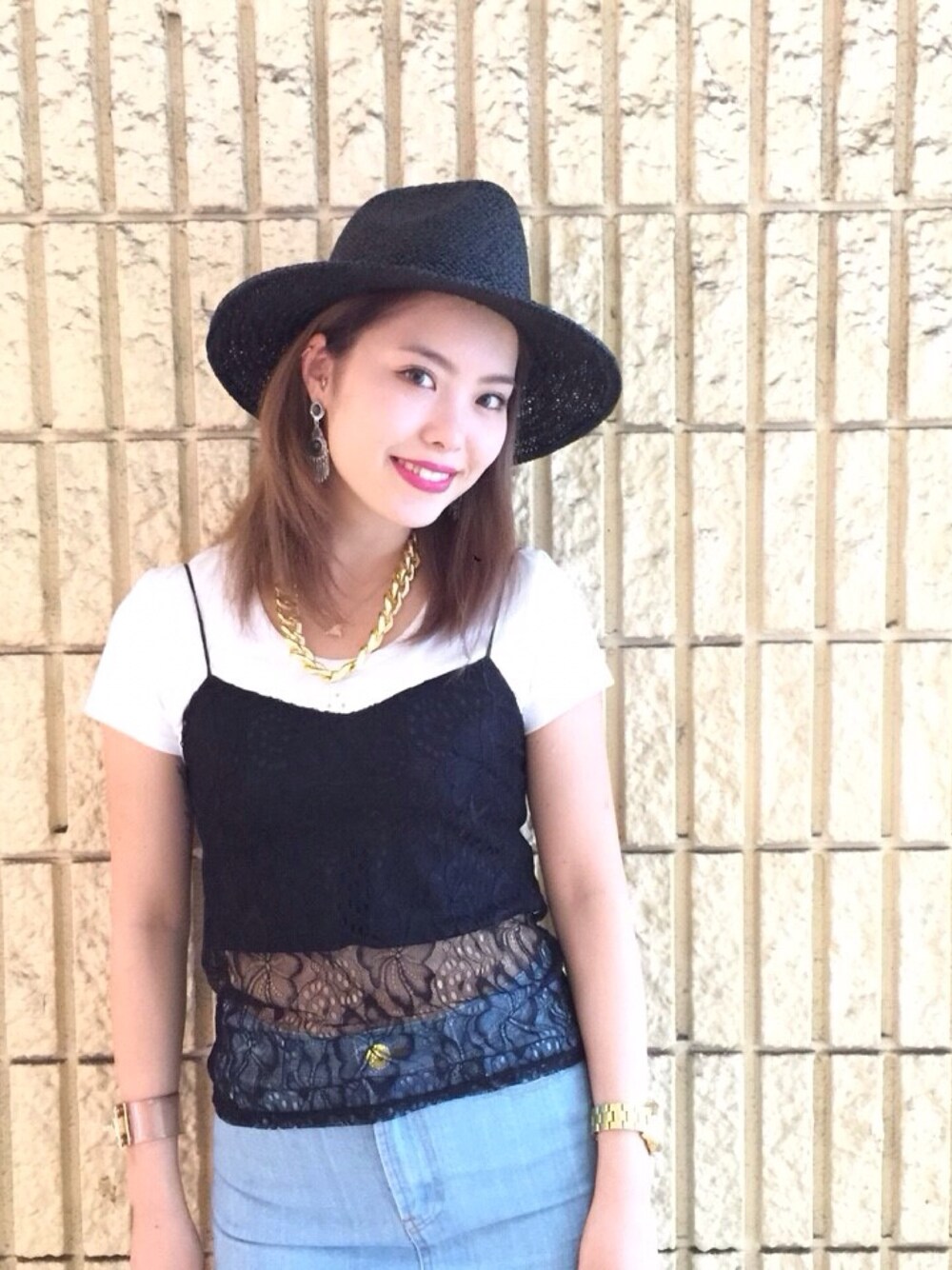 レースキャミにシンプルなショート丈のトップスをレイヤード☆