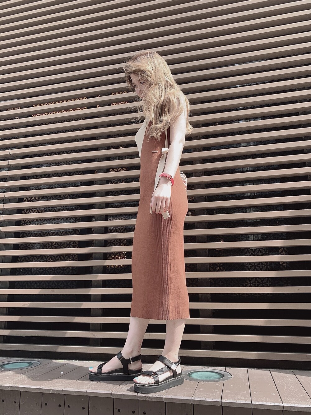 さきのワンピース「カラーブロック ニットドレス」を使ったコーディネート
