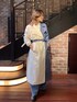 新作のトレンチコートはホワイトとブルーのバイカラーで目を引く1着です。1枚羽織っただけで中はシンプルでもお洒落映えするアイテムです。バイカラーで一見派手に見えそうですが、キレイめシルエットなので大人の方でも着こなししやすいです。