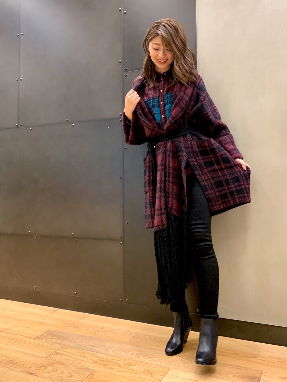 SAORIのシャツ/ブラウス「レディース チェック パッチワーク 長袖 ロングシャツ」を使ったコーディネート