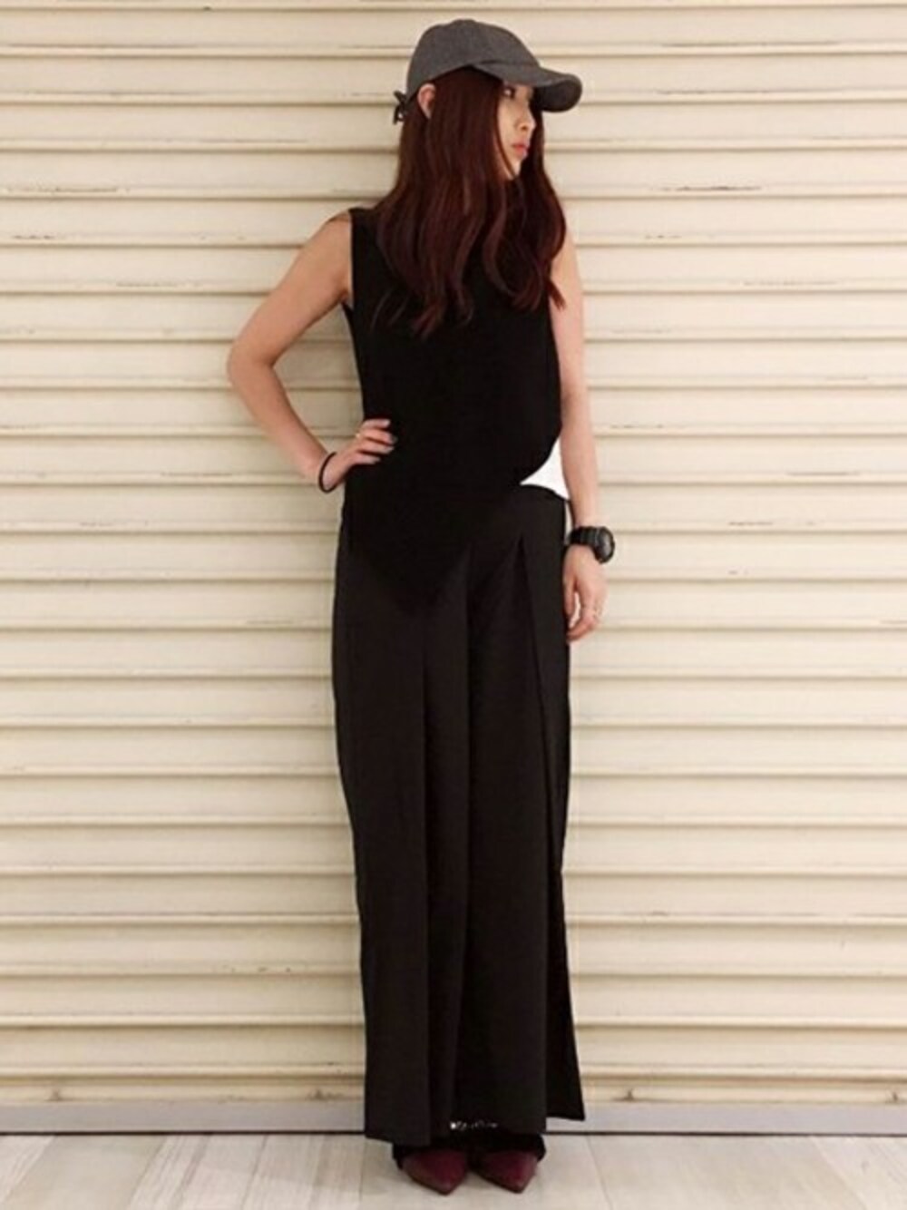 大人気のワイドパンツに動きのあるアシメカットのトップスを合わせてクールなBLACKコーデに! ベーシックな色使いながら、好感度なスタイルへと導いてくれる優れもの◎