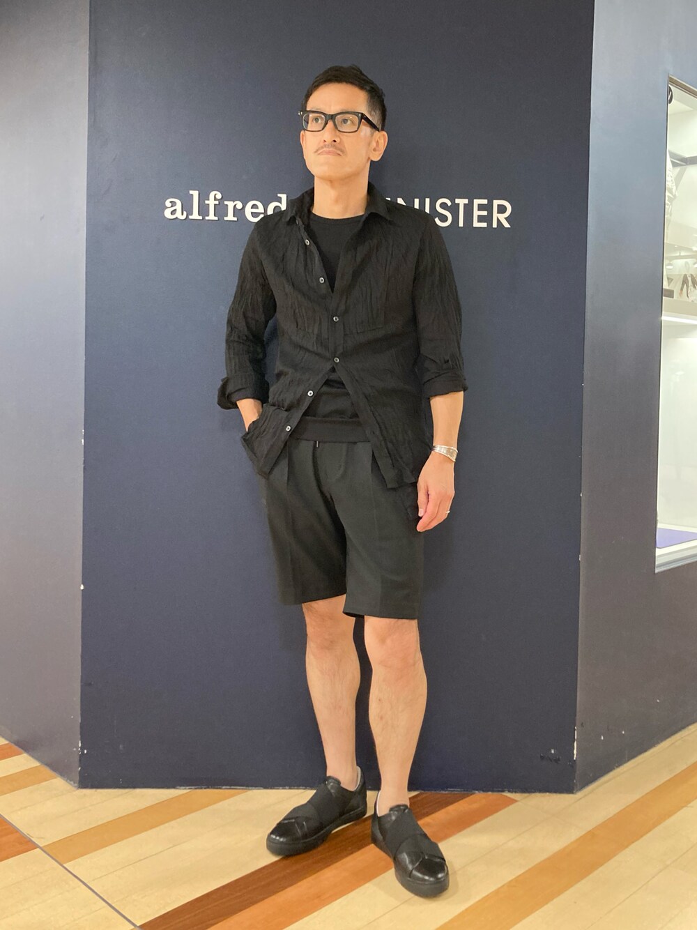 171cm/63k 通常着用サイズ↓↓↓ ウェア 44/30㌅/S 靴 42/26.5cm/甲高/width(ウィズ幅)E ブラックでまとめる夏スタイリング。 素材感は軽いモノやショーツをチョイスして肌面積を増やすと抜けもでます。