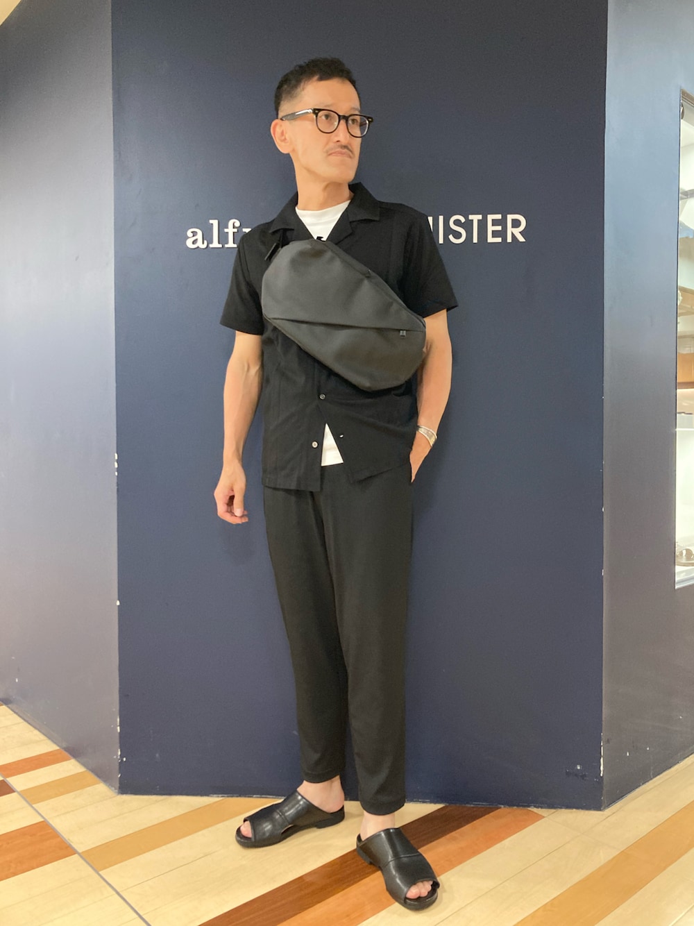 nobg(alfredo BANNISTER ショップスタッフ)のボディバッグ/ウエストポーチ「【軽量、撥水】6L 素材切替 ユーティリティ スリング ボディバッグ」を使ったコーディネート