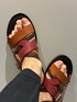 171㎝/63k ⭐︎通常着用サイズ⭐︎ ウェア→44/S /30㌅ 靴→42/26.5cm/甲高/width(ウィズ幅)E シューズ➡️マルチカラーがアクセントのレザーサンダル。スッと足入れ、そのままお出かけできる魅力があります。軽くてインソールが馴染みやすいのも魅力。 サイズ感➡️ジャストサイズがオススメです。少し余裕あります。レザーも柔らかくなりやすいので、馴染みも早いです。
