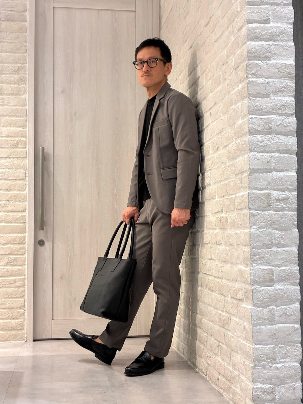 171㎝/63k ⭐︎通常着用サイズ⭐︎ 靴→42/26.5cm/甲高/width(ウィズ幅)E シューズ👞➡️大定番、ブラックコインローファー。ツヤありレザーなのでオンオフの足元を格上げしてくれます。 ジャストサイズでフィットしてくれます! バッグ👜➡️容量たっぷりなトートバッグ。ジップ付きも細かいが嬉しい配慮。 本格シボ革がビジネススタイルにしっかりハマります!