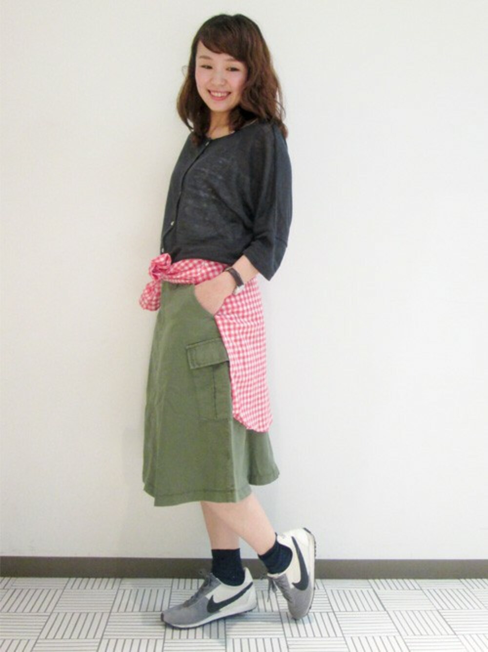 トップスは2WAYで前後着ができ、カーディガンとしての着用も可能です! また、裾レースのタンクトップもセットになっていていろんな着こなしに合わせていただけます。 カーゴスカートはシンプルなので飽きることなく1年通してお使いいただけます。 これから暑くなってきますが、あえて初秋にも出番の多いコーディネートにしました^^