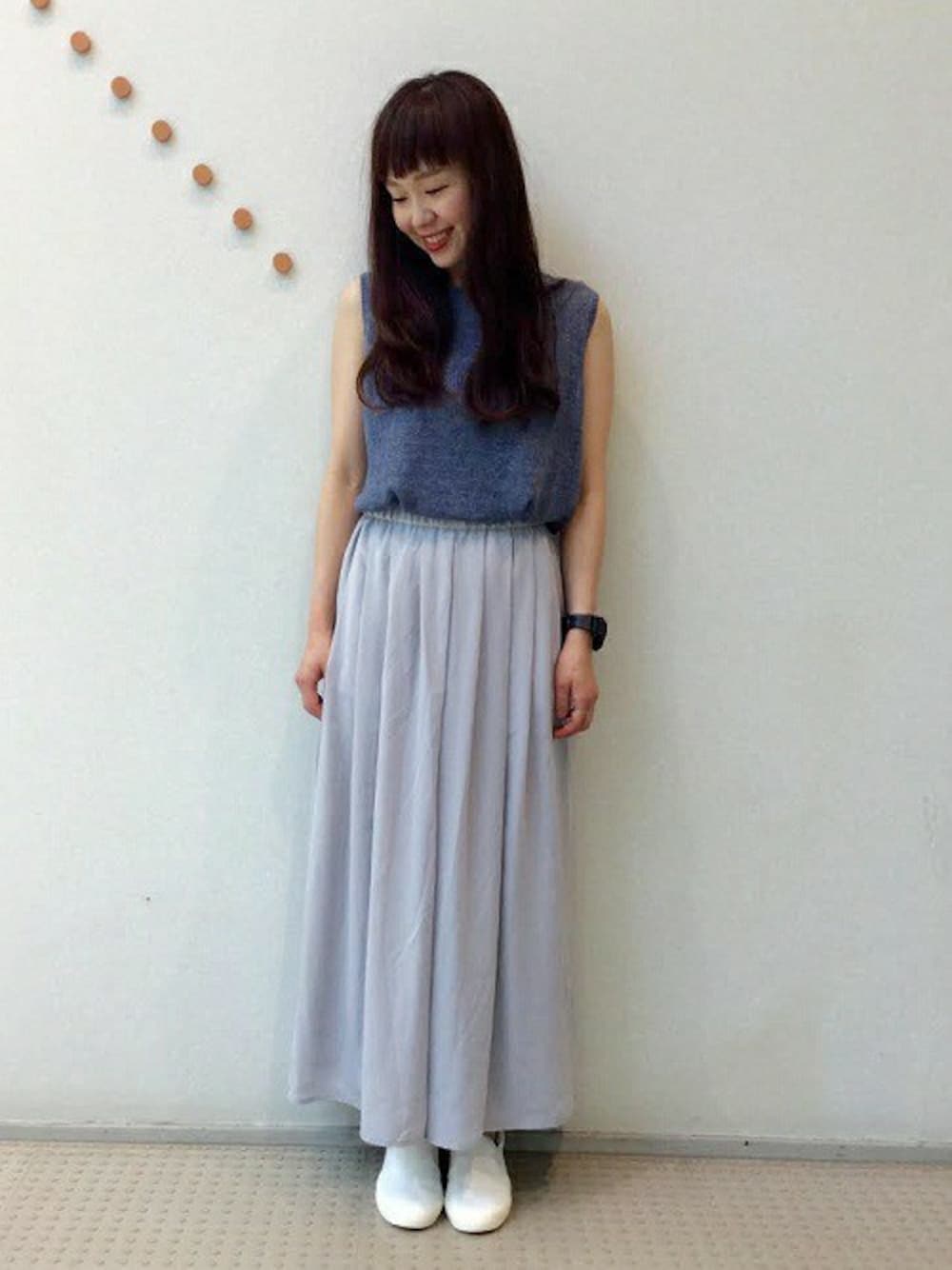軽やかな夏らしいスタイリングにしました。 スカートのように見えるボトムは実はパンツで動きやすさもポイントです。 女性らしい柔らかさのある素材はどんなスタイリングに合わせやすく 着心地の軽さは真夏のワードロープにかかせないアイテムですよ♪