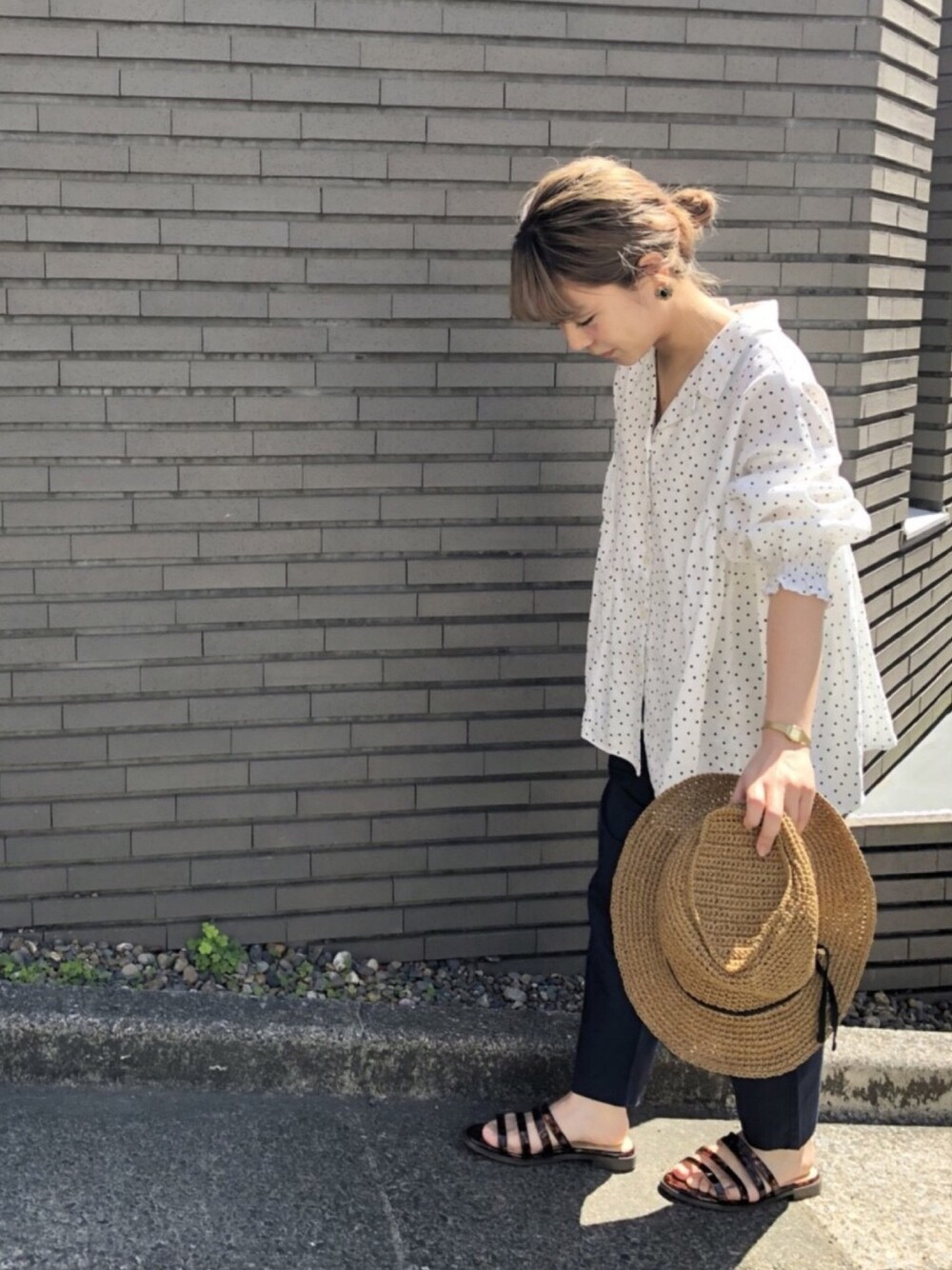 studio CLIP saito(studio CLIP 本部)のシャツ/ブラウス「【WEB限定販売】フレンチリネンドットブラウス」を使ったコーディネート